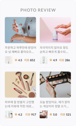 리뷰 관리 자동화, 개인화 고객 관리, 사이즈 추천 등 온라인 쇼핑몰 운영에 필요한 다양한 기능을 통해 업무 효율 및 매출 향상 효과를 누릴 수 있습니다. 크리마는 쇼핑몰이 핵심적인 업무에 집중할 수 있도록 지속적으로 최신 기술 트렌드 기능을 제공합니다.